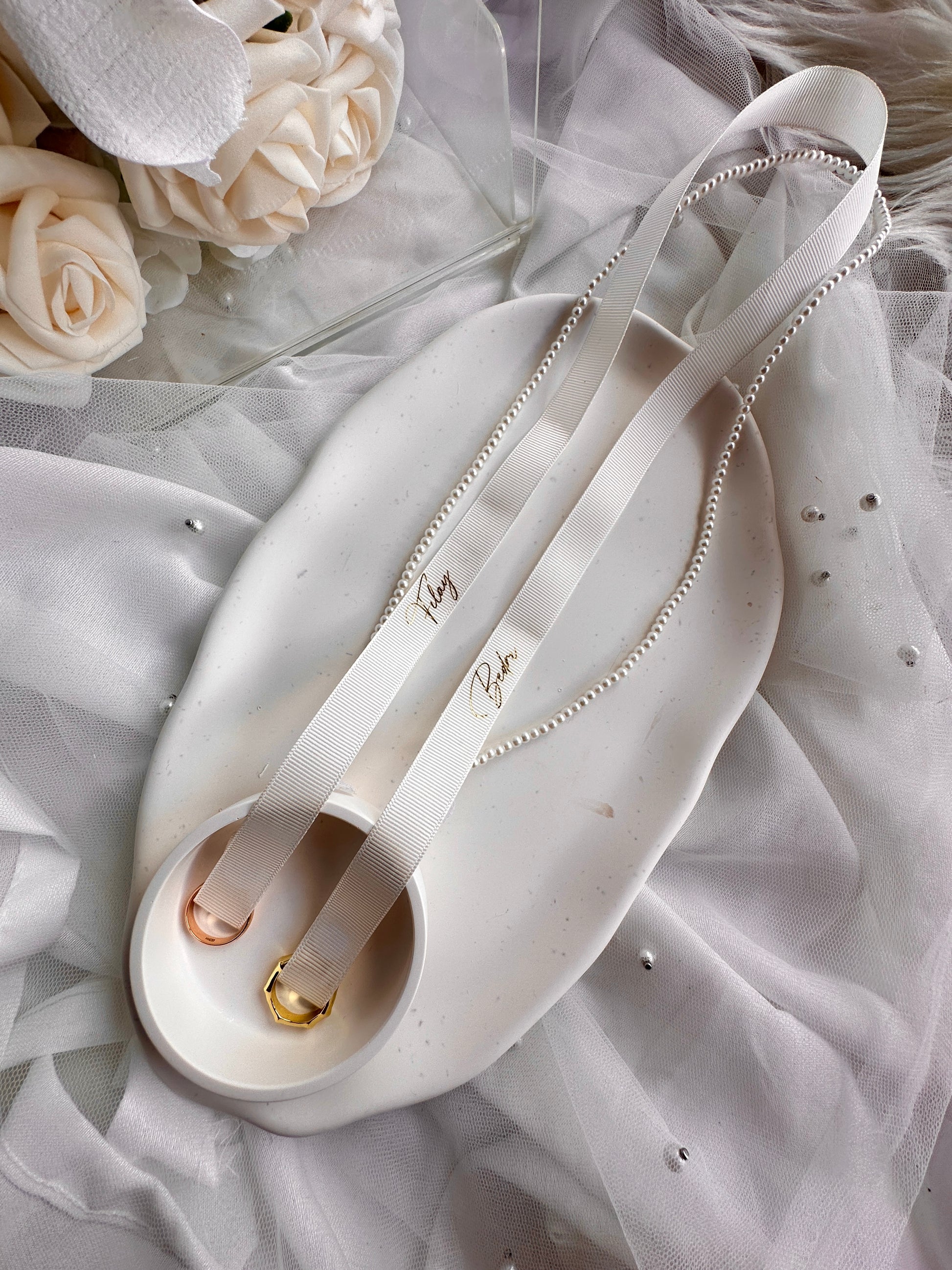 Ein wunderschönes Ringband mit Perlenband für euer Eheversprechen.