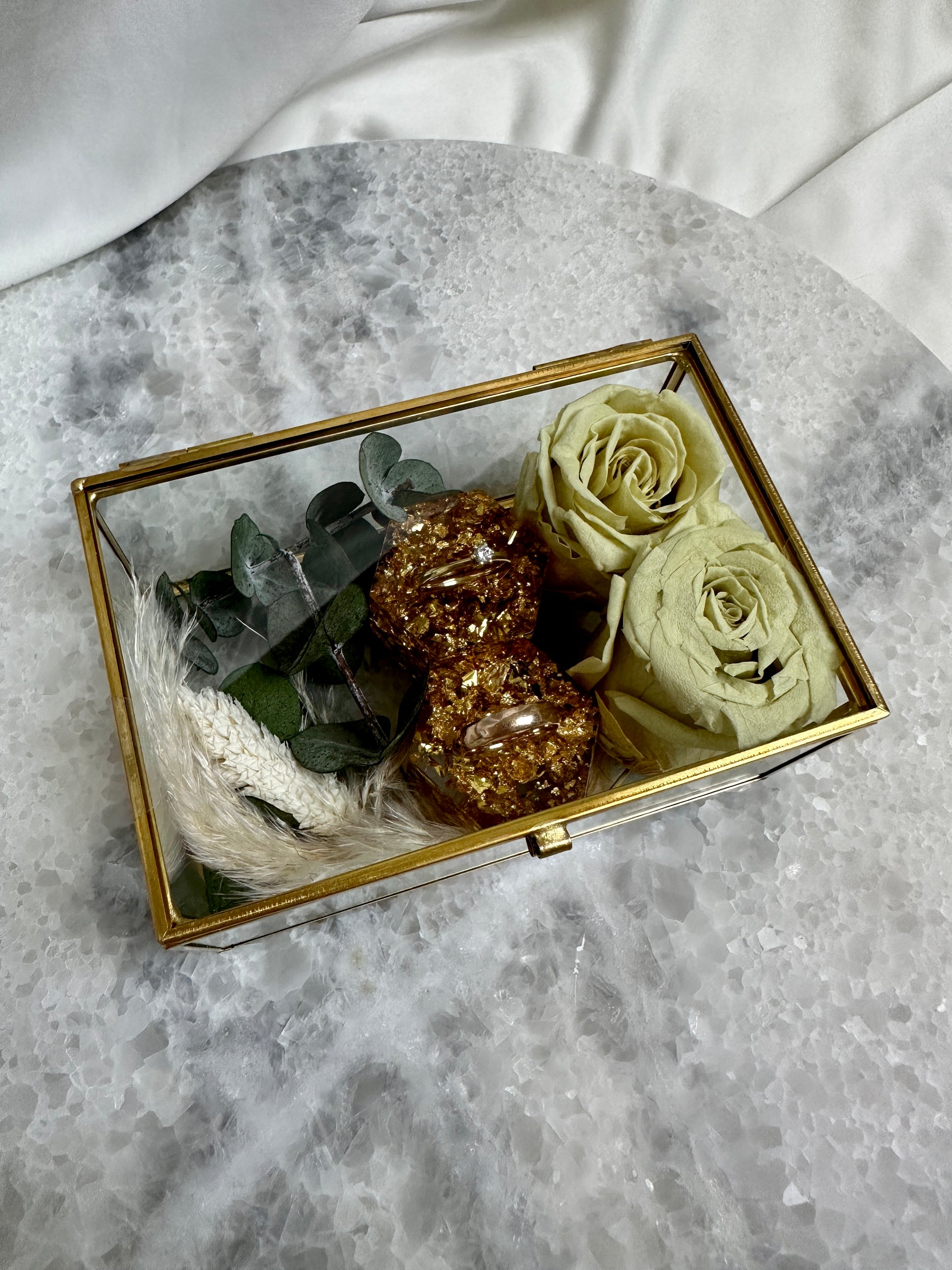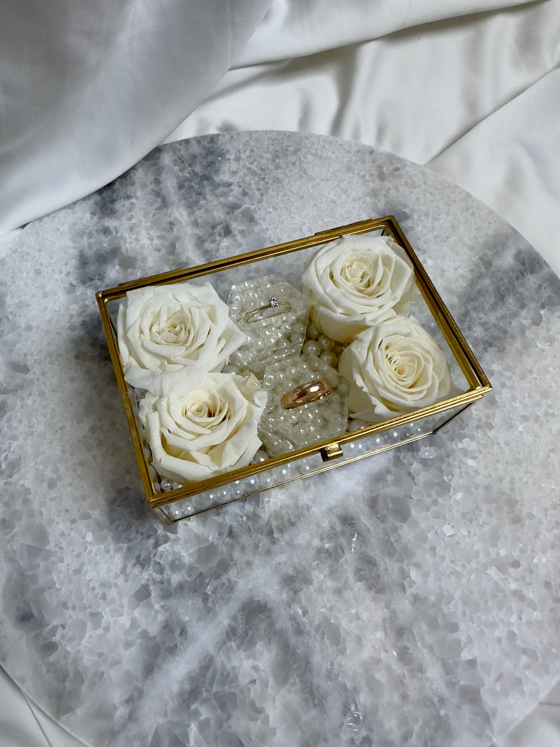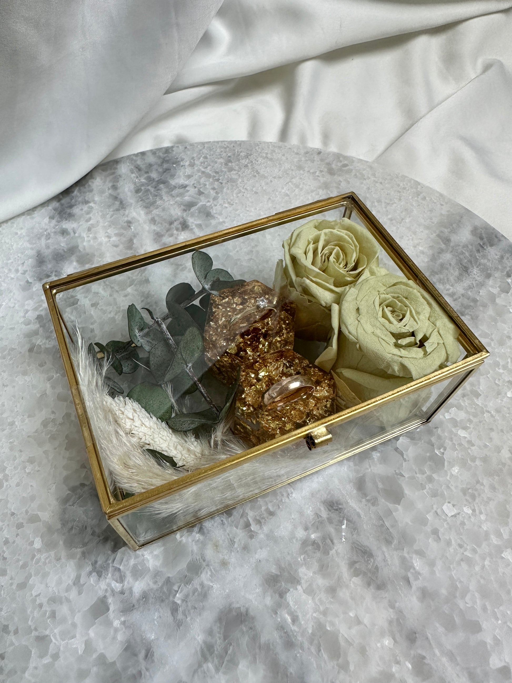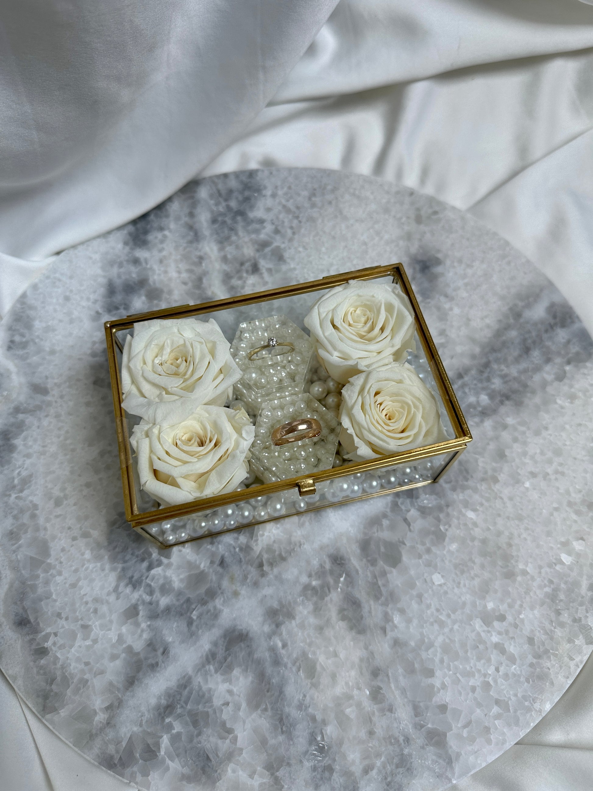 Ein Set aus Ringbox Ringhalter und Rosen für eure Verlobung oder Hochzeit.