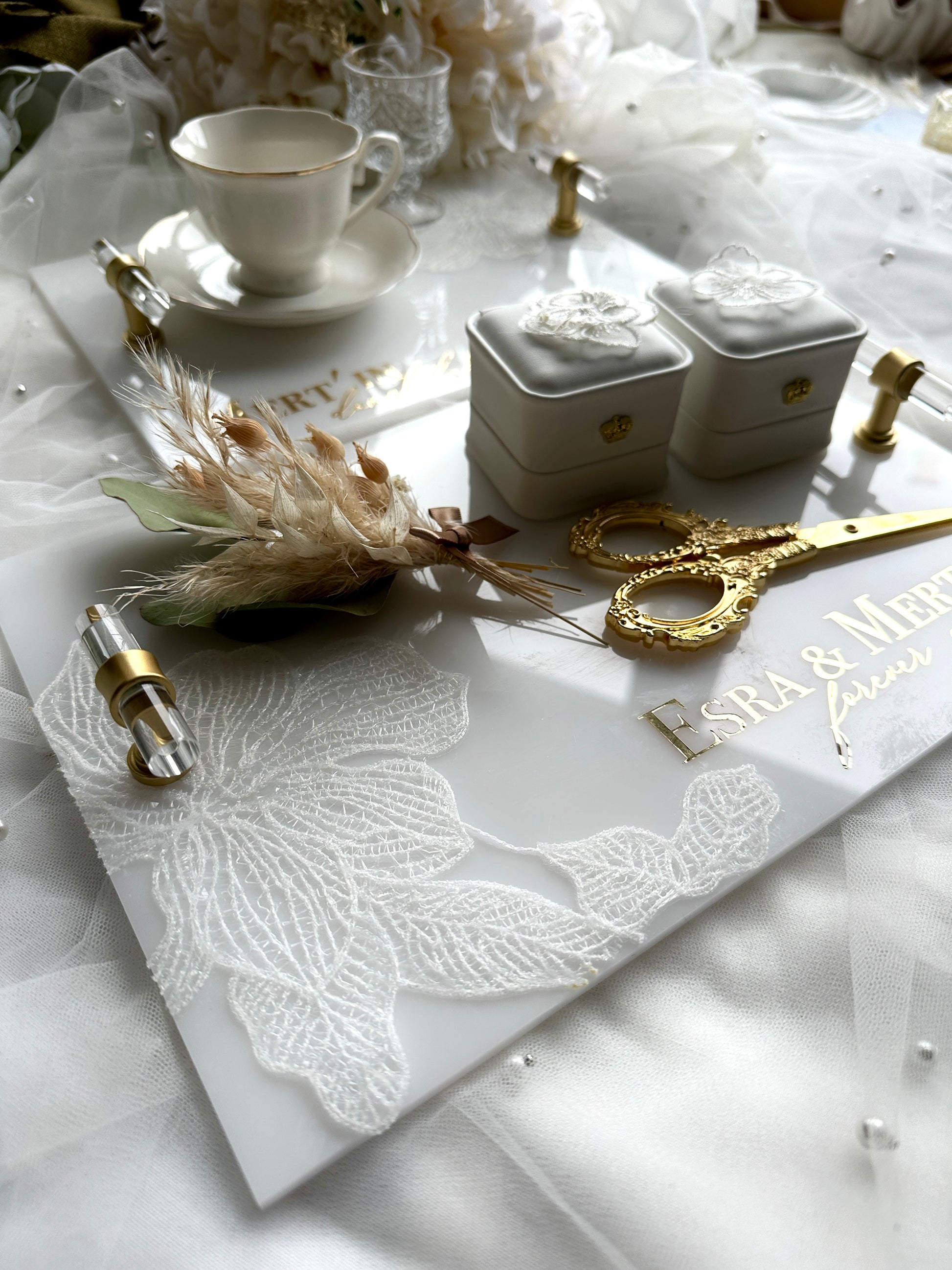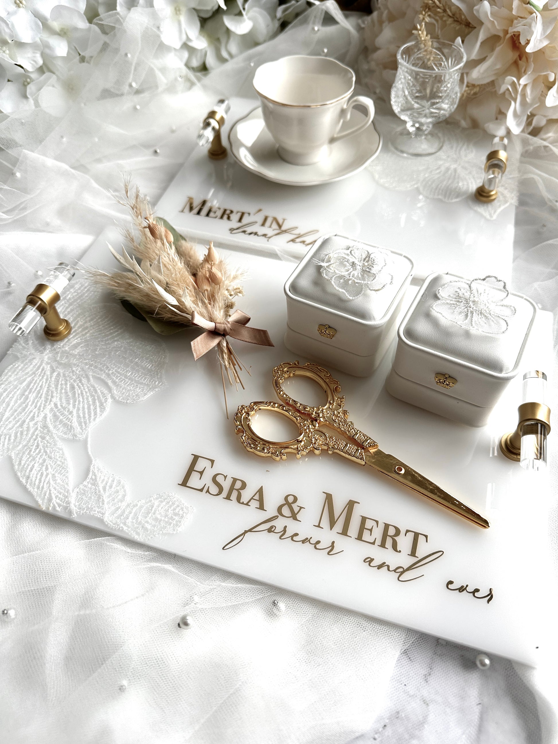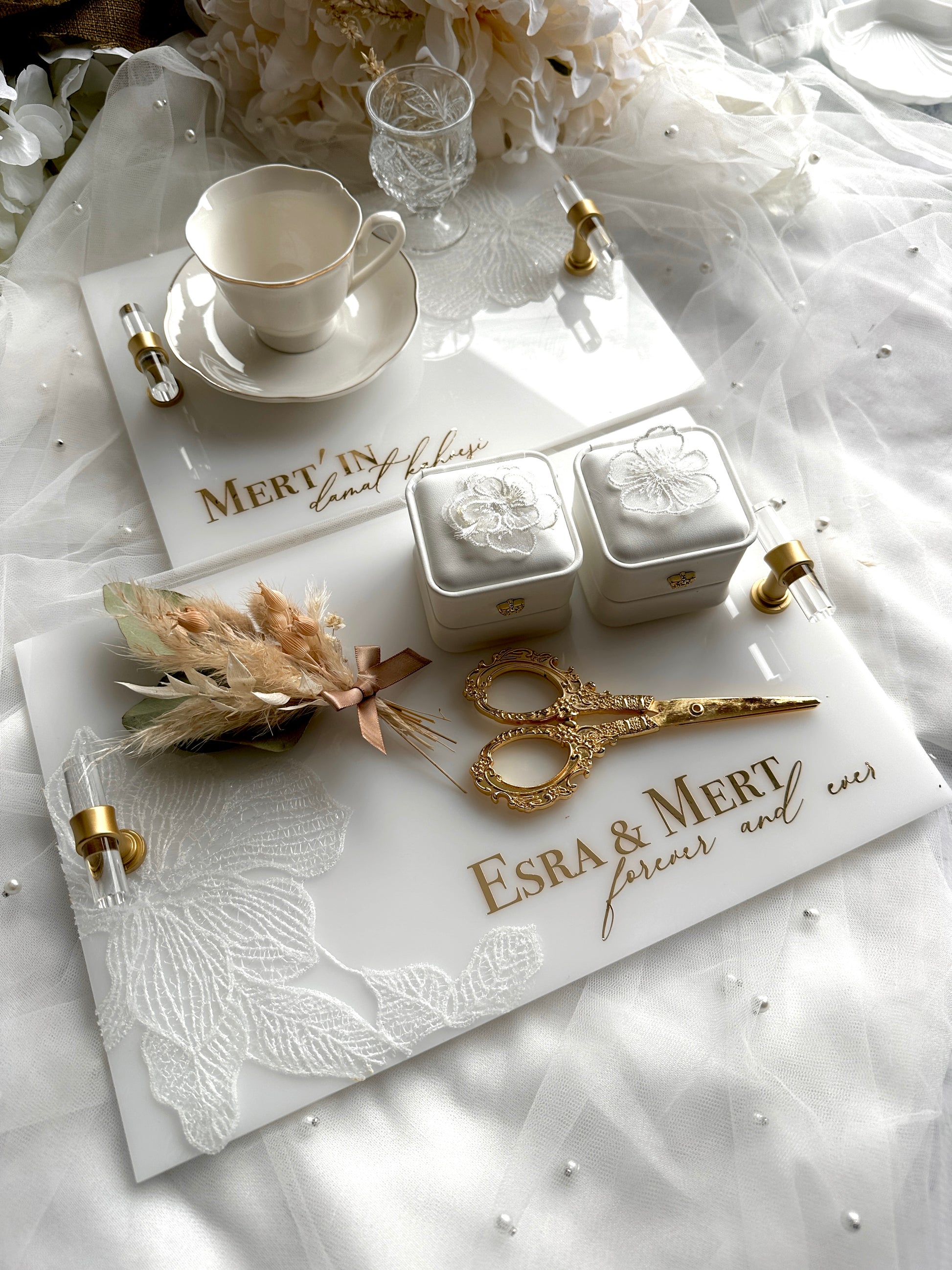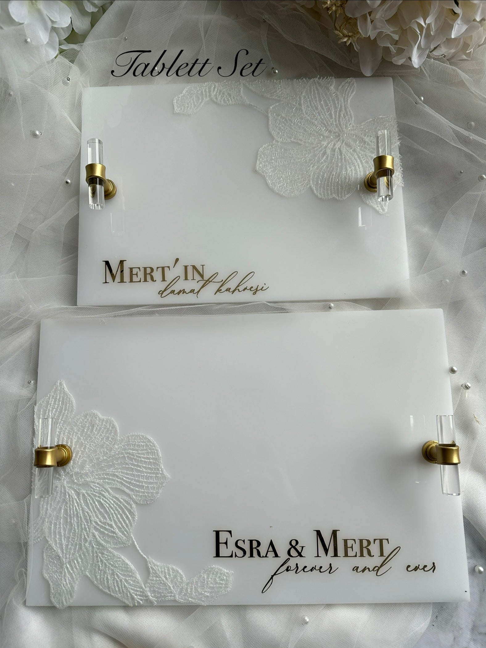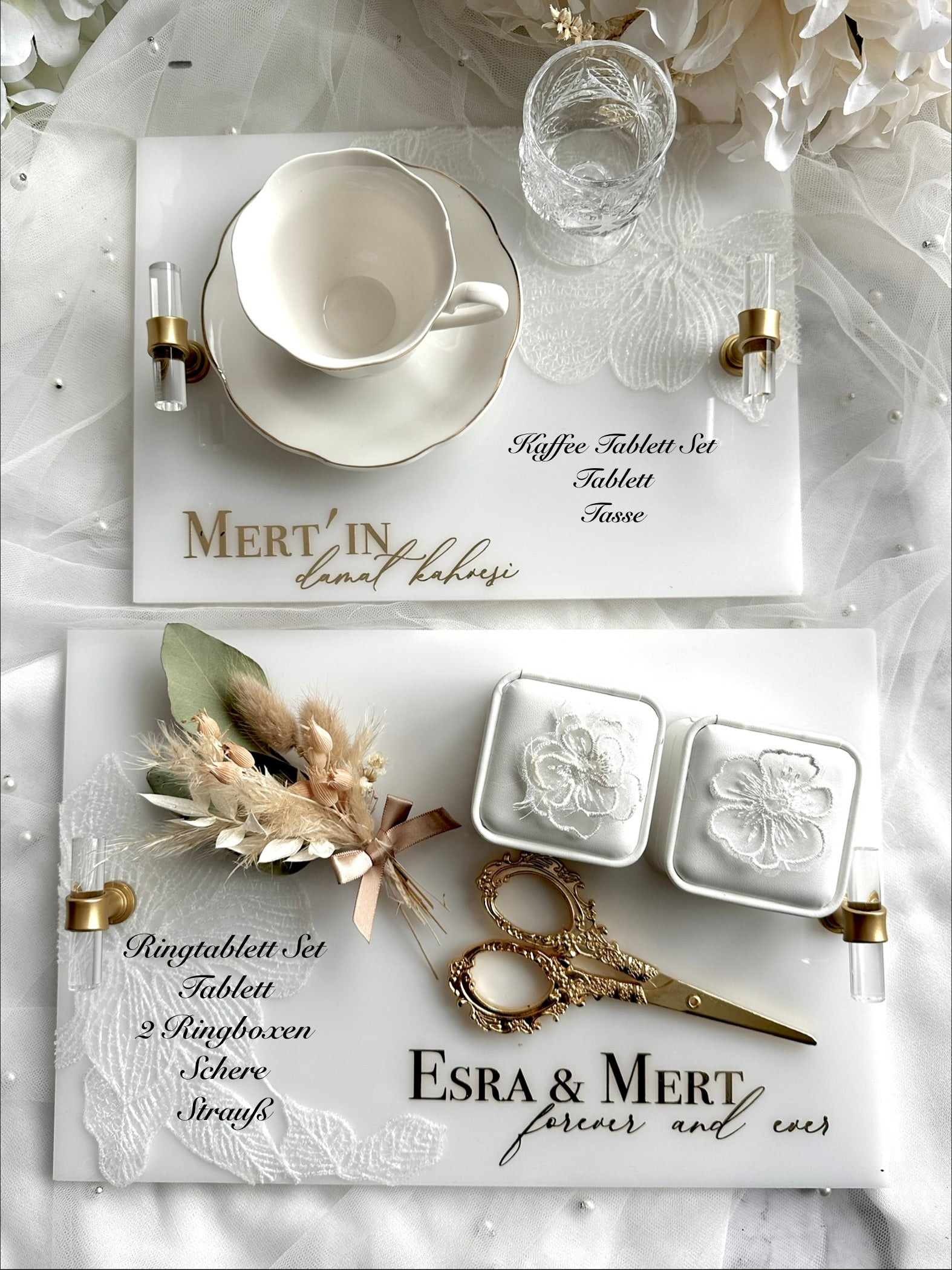 Verlobungstablett mit Spitze weiß | Personalisiertes Tablett | nisan tepsisi | Damat Kahvesi Tepsisi | Verlobungsset
