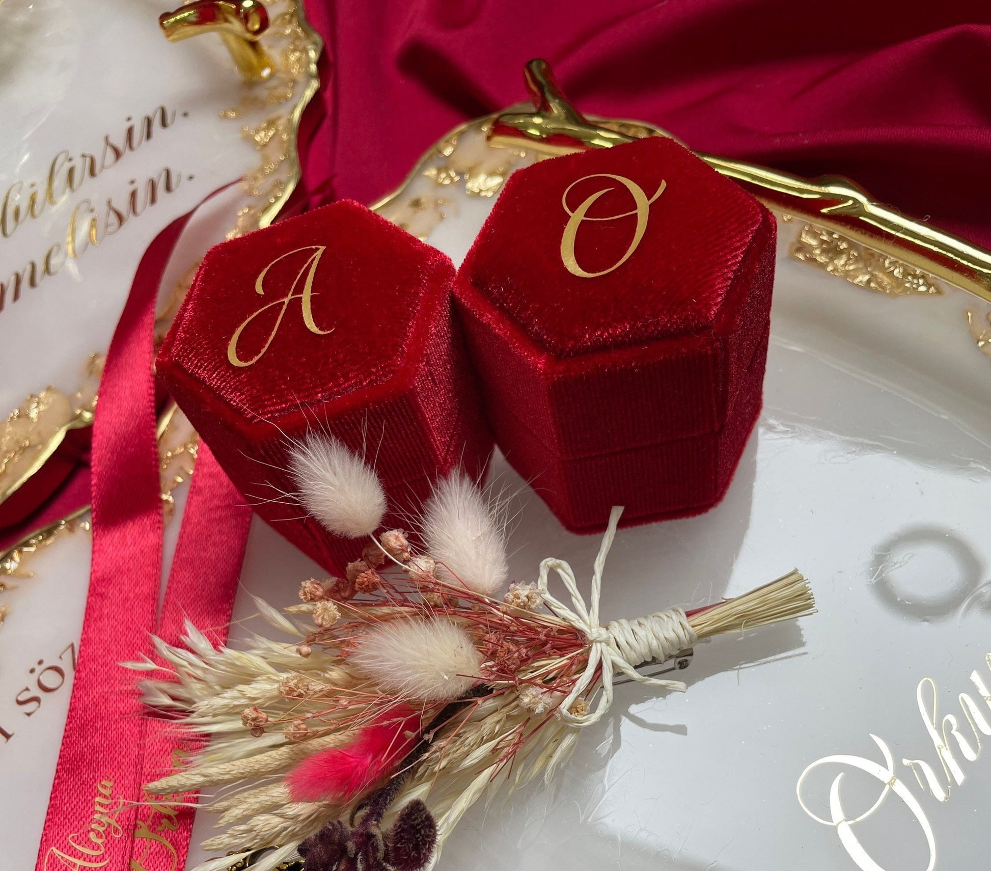 Verlobung Hochzeit Ringbox damat kahvesi tepsisi Samt